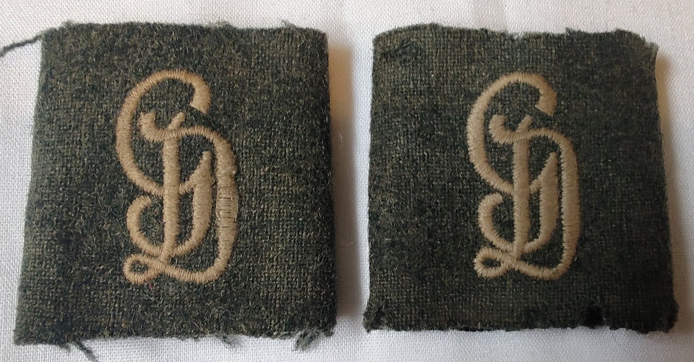 Wehrmacht 'Grossdeutschland' (GD) pair of slip on shoulder strap cyphers, the slip ons are made from field grey wool and off white monograms 'GD' for the Grossdeutschland Division.