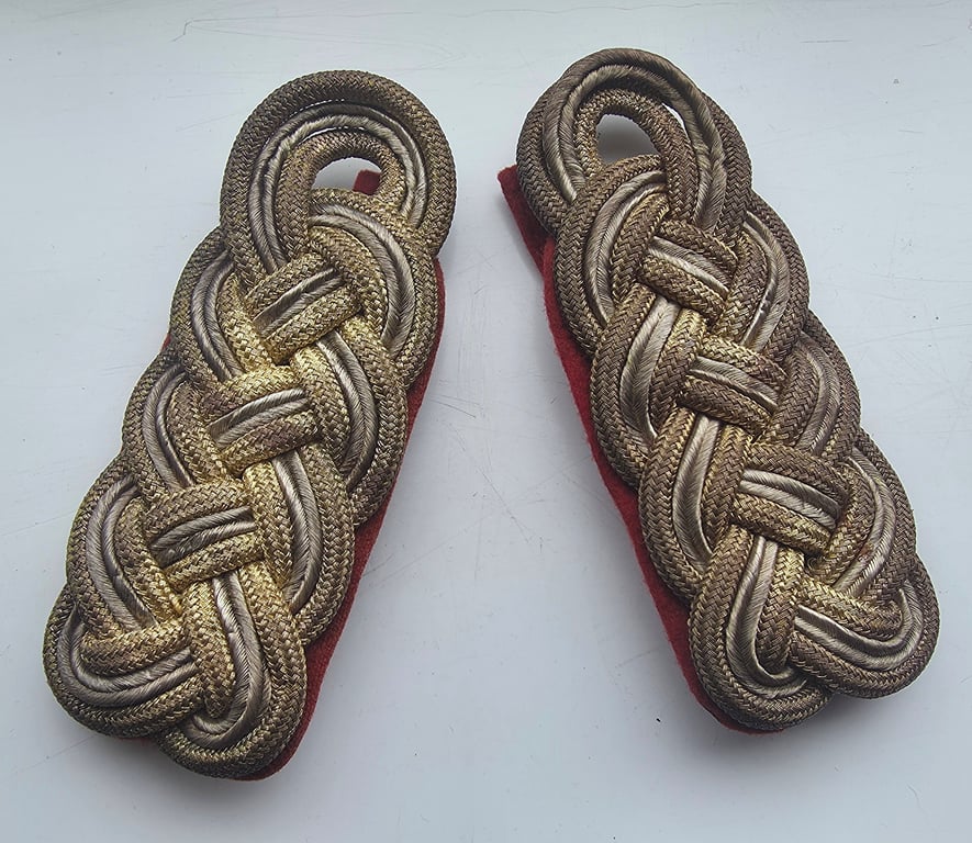 A matching pair of Heer German General slip on shoulder boards. The boards have the bullion gilt tops and red wool bases with both tongues attached.
