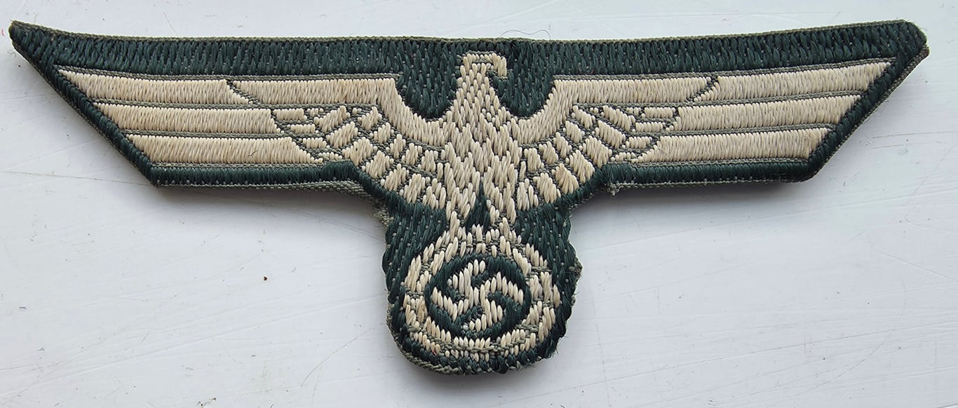 A nice folded and cap removed M36 bevo cap eagle, the eagle is in overall very nice condition and undamaged. The eagle is the early white on dark green.