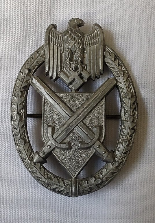 WWII German Heer schützenschnur 2nd pattern shield in good used condition. The shield shows good detail with all four pins in place on the back.