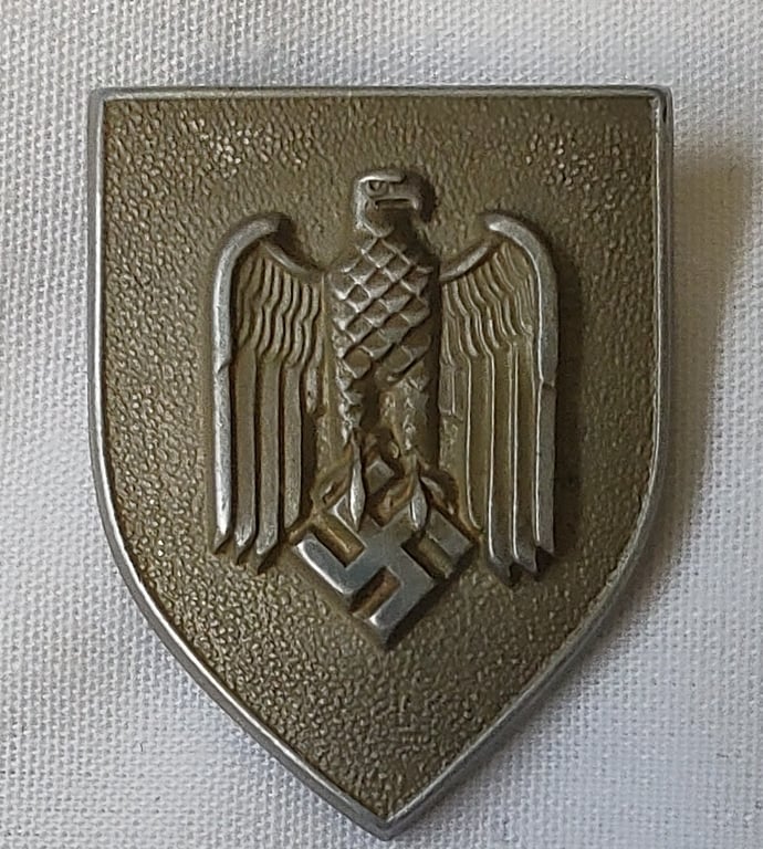 WWII German Heer schützenschnur 1st pattern shield in good used condition. The shield shows good detail with all three pins in place on the back.