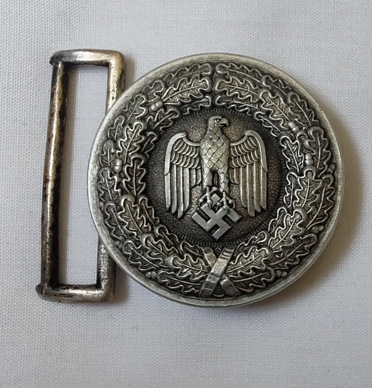 The attractive and I deem minimally used or worn - 'standard' pattern, aluminium based (dress ie 'Ausgeh' pattern) belt-buckle ( 'Ausgeh-Koppelschloss für Unteroffiziere u. Mannschaften des Heeres').